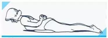上半身如圖示位置,保持髖關(guān)節(jié)緊貼地面,同時保持下腰部及臀部放松。